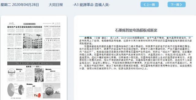 本報訊 (記者 潘紅) 進入4月,2019-2020供暖季結束,由于氣溫不穩定,室內溫度普遍偏低,許多市民用上了空調、電暖器等家用電器,這其中大同大學炭材料研究所研發的石墨烯智能電熱膜板成為家用取暖新寵。