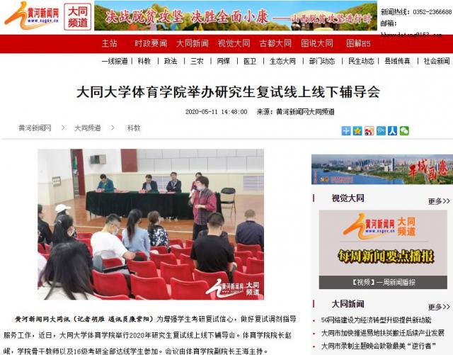 黃河新聞網大同訊(記者胡雁 通訊員廉紫陽)為增強學生考研復試信心,做好復試調劑指導服務工作,近日,大同大學體育學院舉行2020年研究生復試線上線下輔導會。體育學院院長趙岷,學院骨干教師以及16級考研全部達線學生參加。會議由體育學院副院長王海主持。