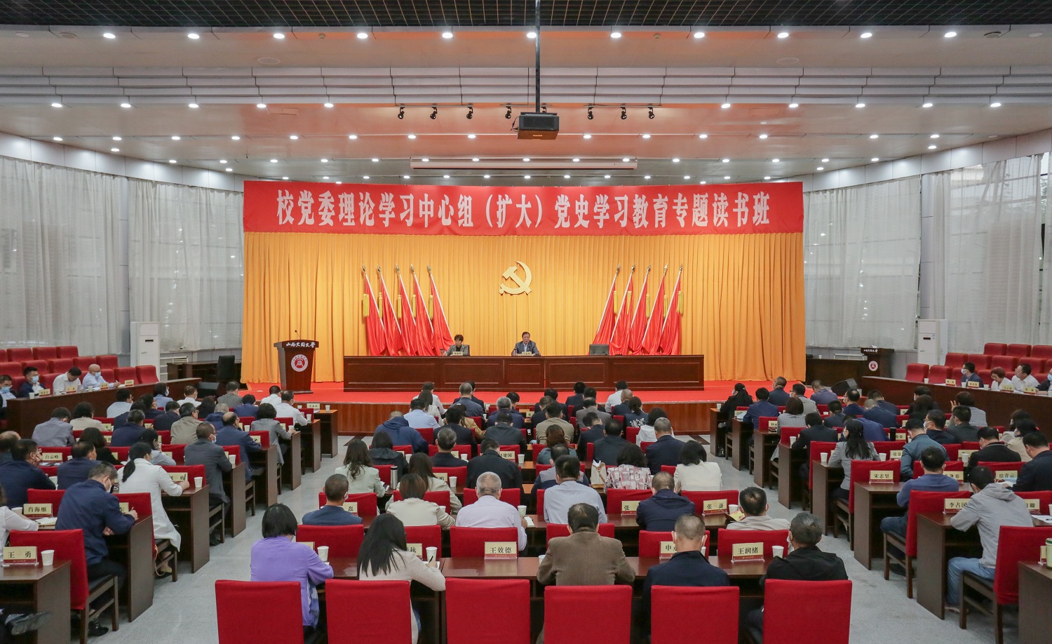 校黨委常委,全校副處級以上干部、校黨史學習教育領導小組辦公室成員參加讀書班。(王巍 余致楠)