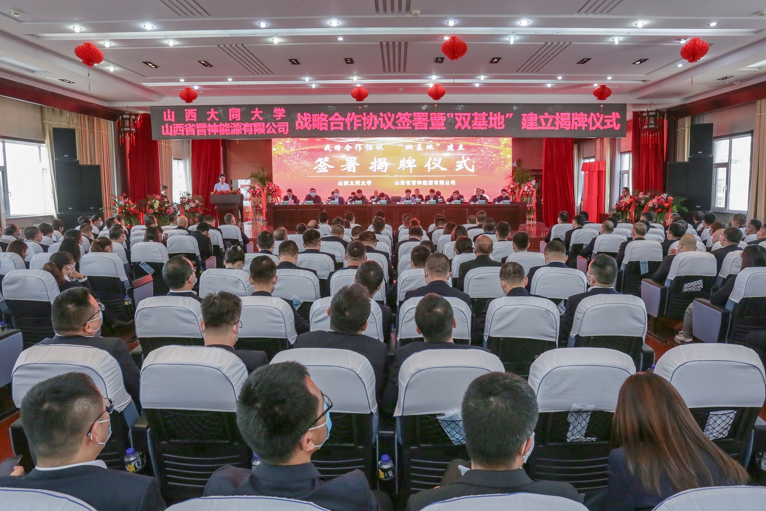 ? 金秋十月,滿目繁華,到處洋溢著豐收的喜悅。10月26日上午,山西大同大學(xué)與晉神能源有限公司戰(zhàn)略合作協(xié)議簽署暨“雙基地”建立揭牌儀式在晉神能源有限公司隆重舉行,攜手開啟精誠(chéng)合作、共享共贏新征程。這是雙方貫徹落實(shí)習(xí)近平新時(shí)代中國(guó)特色社會(huì)主義思想及全國(guó)教育大會(huì)等重要精神的重大舉措,是雙方高度重視人才戰(zhàn)略和科技創(chuàng)新的具體體現(xiàn),是雙方落實(shí)山西省第十二次黨代會(huì)精神的具體行動(dòng),是山西大同大學(xué)落實(shí)“興文科、強(qiáng)醫(yī)學(xué)、振工科、精師范”目標(biāo)定位、著力加強(qiáng)新工科建設(shè)的戰(zhàn)略舉措,也是山西大同大學(xué)堅(jiān)持“轉(zhuǎn)型發(fā)展、內(nèi)涵發(fā)展、特色發(fā)展”、努力建設(shè)高水平應(yīng)用型綜合大學(xué)的生動(dòng)實(shí)踐,意義重大、影響深遠(yuǎn)。