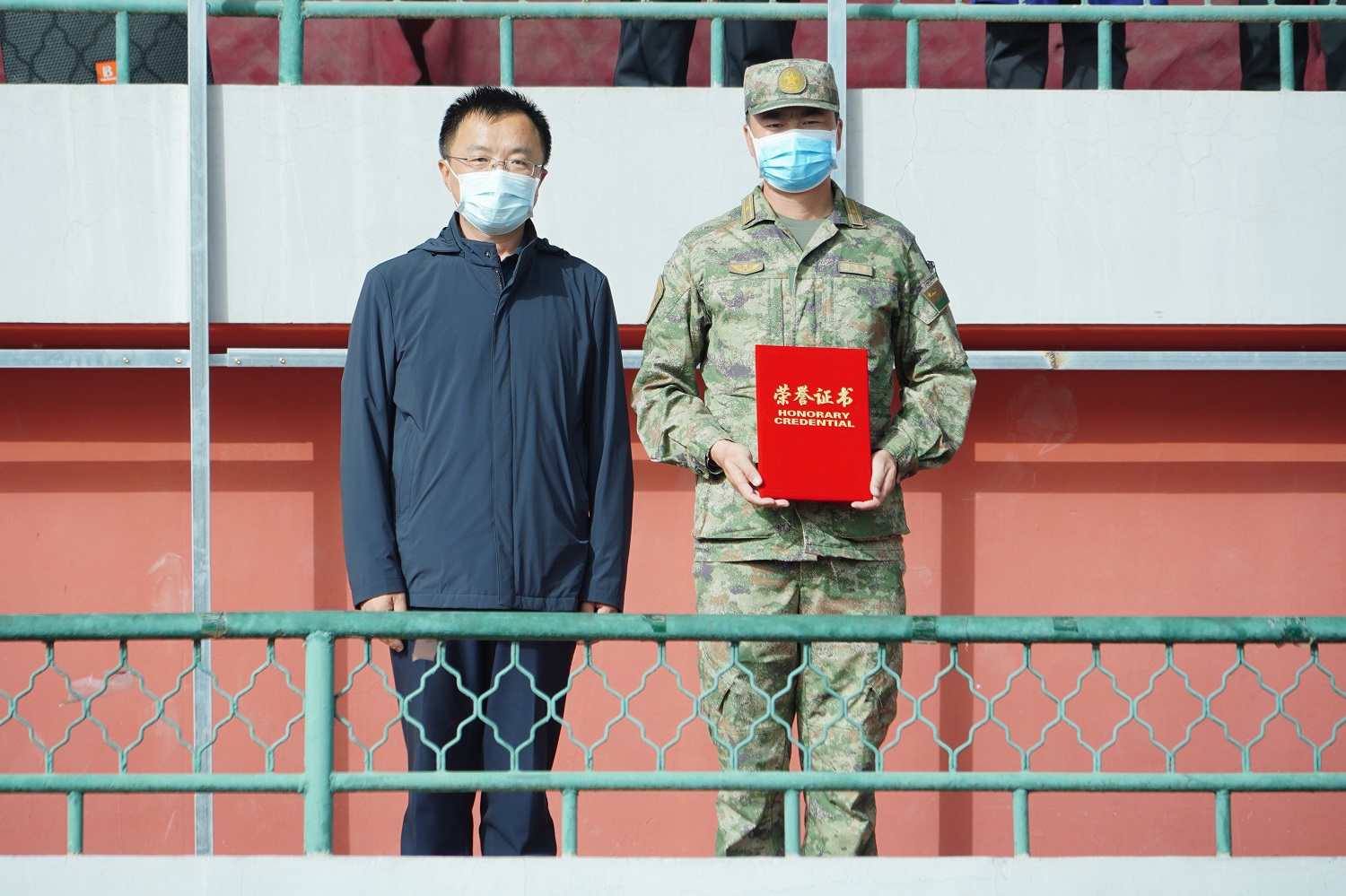 校黨委書記趙水民和黨委副書記寇福明分別向承訓(xùn)部隊(duì)頒授了錦旗和榮譽(yù)證書。