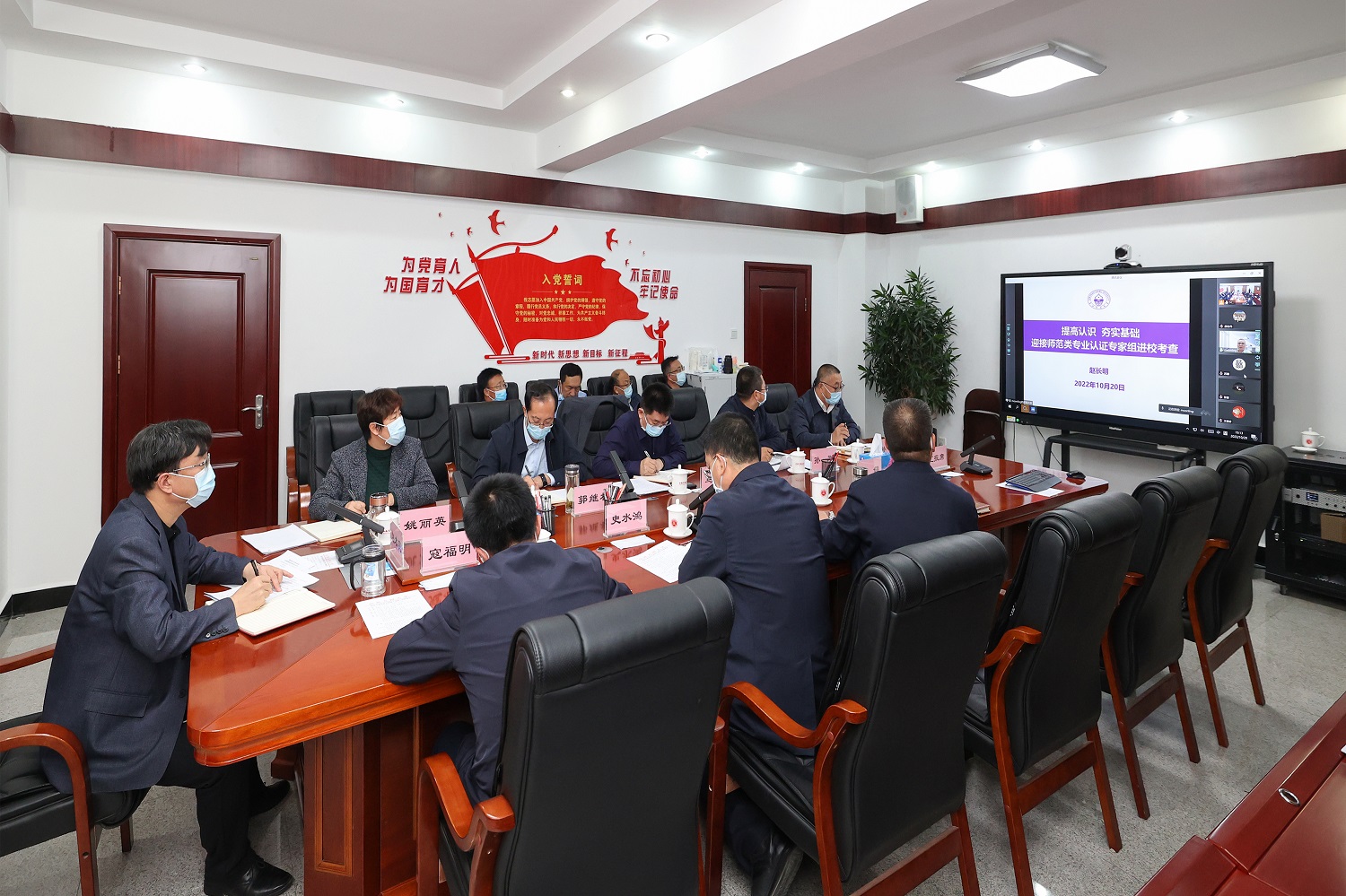 ?? 10月20日,我校在行知樓11層1號會議室召開師范類專業認證專家線上考查工作推進會。校黨委書記趙水民,黨委副書記、校長姚麗英,校領導寇福明、劉洪、郭繼林、張旻、石鳳珍、史水鴻、馬軼明、雷建設出席會議,各職能部室科級以上干部,各相關學院副處級以上干部及師范類專業系主任、教研室主任,教務部和教學質量監控與督導中心全體工作人員參加會議。會議由校黨委副書記寇福明主持。