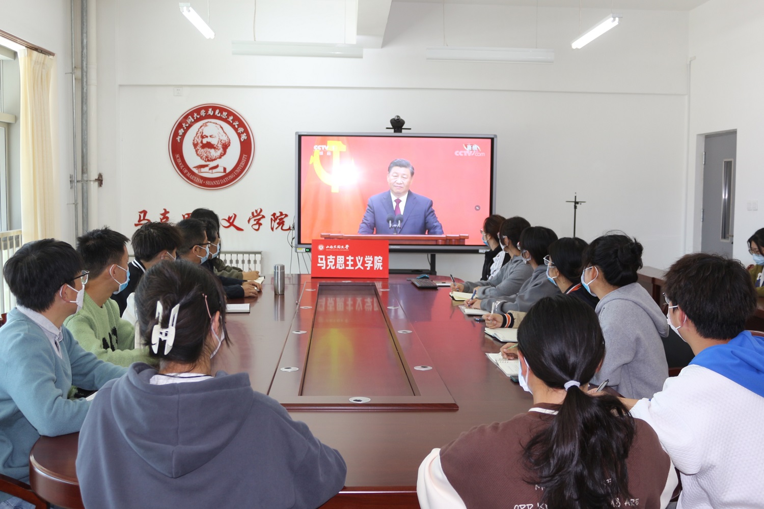 ?????? 10月23日,中國共產(chǎn)黨第二十屆中央委員會第一次全體會議新選出的中央政治局常委同采訪中共二十大的中外記者見面。見面會上,習(xí)近平總書記發(fā)表重要講話。我校校院兩級黨委理論學(xué)習(xí)中心組和各學(xué)院、部門、黨支部采取集中和分散相結(jié)合的方式,認(rèn)真組織黨員干部和師生員工收看見面會直播盛況,深入學(xué)習(xí)習(xí)近平總書記重要講話,進(jìn)一步在全校范圍內(nèi)掀起學(xué)習(xí)貫徹黨的二十大精神的高潮。