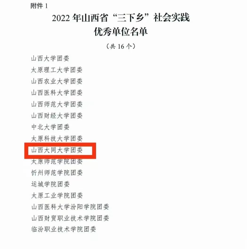 經基層申報、團省委審核推薦、團中央組織評議等環節,10月21日,團中央相關部門對“三下鄉”社會實踐優秀集體、個人和項目進行通報表揚。我省16個單位、30支團隊、36名個人進入通報表揚名單,我校名列其中,榮獲2022年全國“三下鄉”社會實踐優秀單位和山西省“三下鄉”社會實踐優秀單位。