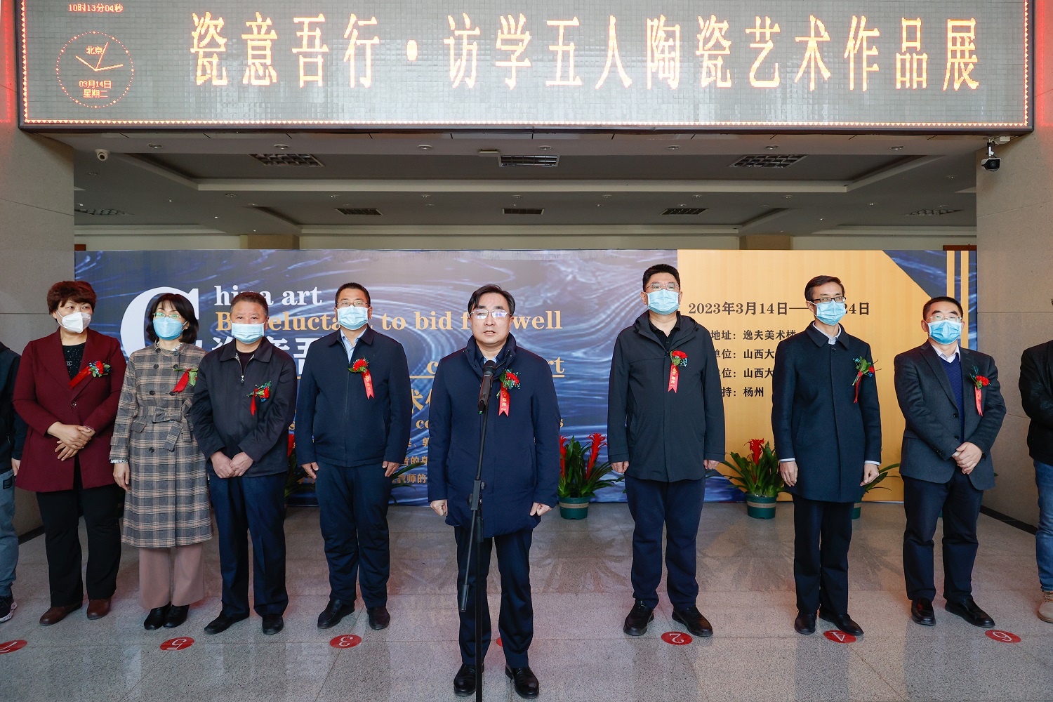 趙水民宣布“瓷意吾行·訪學五人陶瓷作品展”開幕。