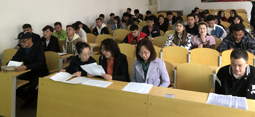 為深入學習貫徹習近平新時代中國特色社會主義思想和黨的二十大精神,扎實推進民族團結教育,鑄牢中華民族共同體意識,切實提高我校少數民族學生使用國家通用語言文字的能力,教務部語言文字辦公室組織5名普通話水平測試員,4月1日下午在新平旺校區4號樓105號教室開展了少數民族學生普通話專項培訓。培訓課由專職輔導員迪麗拜爾·阿力甫主持。