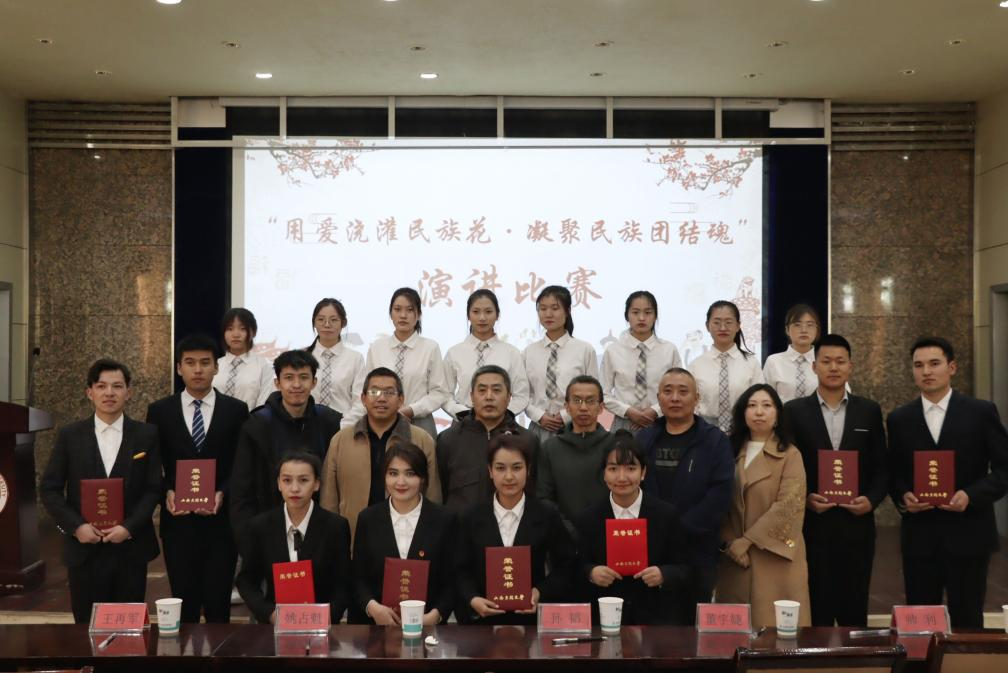 八位參賽選手,圍繞“用愛(ài)澆灌民族花 凝聚民族團(tuán)結(jié)魂”主題,結(jié)合自身成長(zhǎng)經(jīng)歷與民族特色,以熱烈而深沉的精神,用樸實(shí)而生動(dòng)的話語(yǔ),將“民族團(tuán)結(jié)、愛(ài)黨愛(ài)國(guó)、團(tuán)結(jié)友愛(ài)、互幫互助”等主題融入演講作品之中,多層次多角度地闡述自己在成長(zhǎng)中感受到的的愛(ài),表達(dá)自己對(duì)民族團(tuán)結(jié)與青春奮斗的認(rèn)識(shí)與感悟,抒發(fā)了自己的愛(ài)國(guó)愛(ài)黨情懷與民族認(rèn)同感,彰顯了當(dāng)代青年學(xué)生的活力與青春風(fēng)采。真摯的言語(yǔ),訴說(shuō)著濃濃的愛(ài)國(guó)情,充沛的情感,歌頌著偉大的民族精神。任時(shí)光流轉(zhuǎn),新時(shí)代青年共筑中華榮光,五十六個(gè)民族,生活在這片遼闊富饒的土地上,像石榴籽般緊緊抱在一起,點(diǎn)綴著祖國(guó)的壯麗山河。