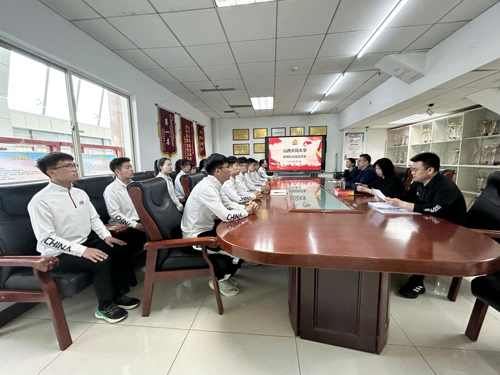 出征前夕,體育學院舉行了運動隊出征動員大會。院黨委書記楊麗萍代表學院向一直刻苦訓練、積極備戰的教練員和運動員們給予親切的問候,希望大家在本次比賽中展現拼搏精神、賽出應有水平,為學校增光添彩。院長趙岷告知隊員們,要提高自己的認識,積極學習其他學校優秀運動員的技術,取長補短,從而繼續傳承下去這份熱愛。運動員們也紛紛表示將在此次比賽中,尊重對手,遵守規則,團結協作,充分展示同大健兒積極進取、勇攀高峰的精神風貌。