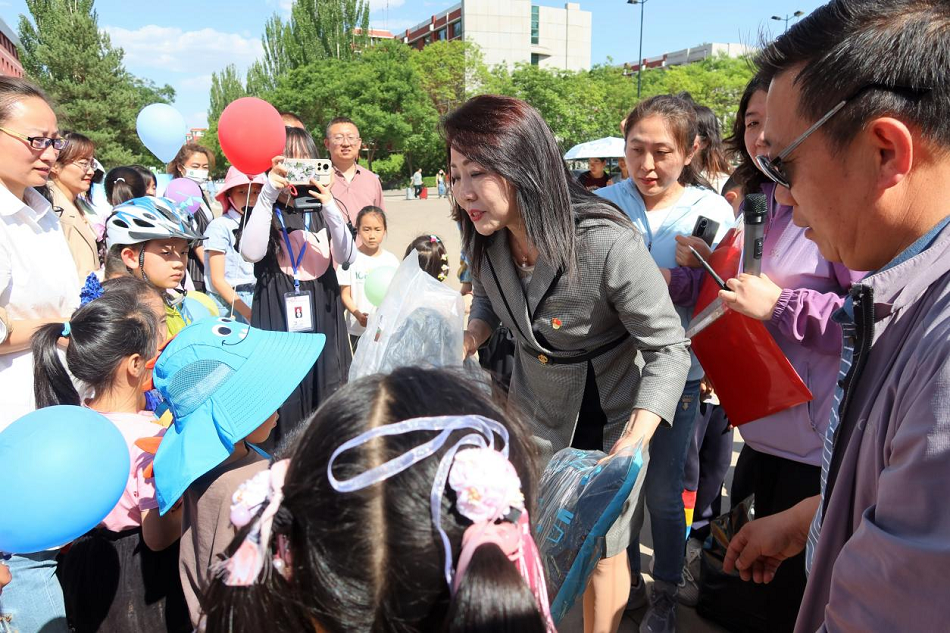 在活動現(xiàn)場,首先由校工會主席侯桂蘭為孩子們送上學(xué)習(xí)用品并代表學(xué)校工會委員會向他們致以節(jié)日的祝賀,希望他們學(xué)習(xí)進(jìn)步、健康成長。
