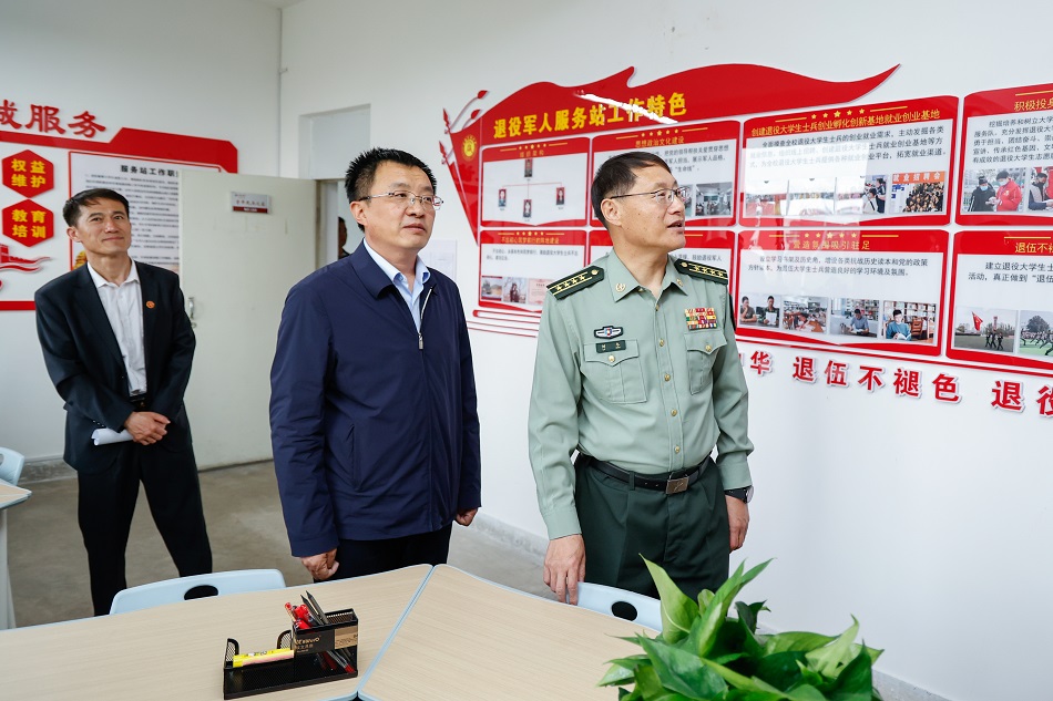 劉冬司令員一行參觀了我校退役大學生士兵服務站,對服務站的征兵政策答疑、宣傳國防和軍事知識等工作進行指導,并深入體育學院,與畢業班輔導員們就如何做好大學生征兵工作進行交流。