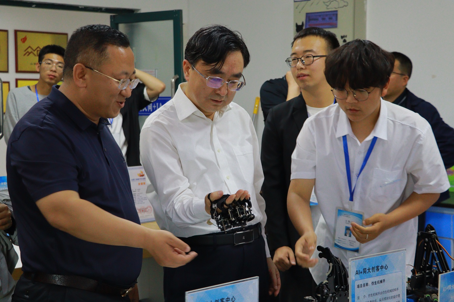 趙水民指出,創(chuàng)新創(chuàng)業(yè)教育是推動和深化學(xué)校教育教學(xué)改革的突破口,是培養(yǎng)高水平應(yīng)用型人才的重要途徑。學(xué)校始終高度重視創(chuàng)新創(chuàng)業(yè)工作,將其作為高水平應(yīng)用型大學(xué)建設(shè)的重要抓手。AI+同大創(chuàng)客中心作為我校起步早、發(fā)展快、水平高的創(chuàng)新創(chuàng)業(yè)綜合平臺,要進一步深挖潛能,緊扣學(xué)校發(fā)展實際,緊密對接行業(yè)產(chǎn)業(yè)和地方發(fā)展需求,做好科技成果轉(zhuǎn)化與應(yīng)用工作。