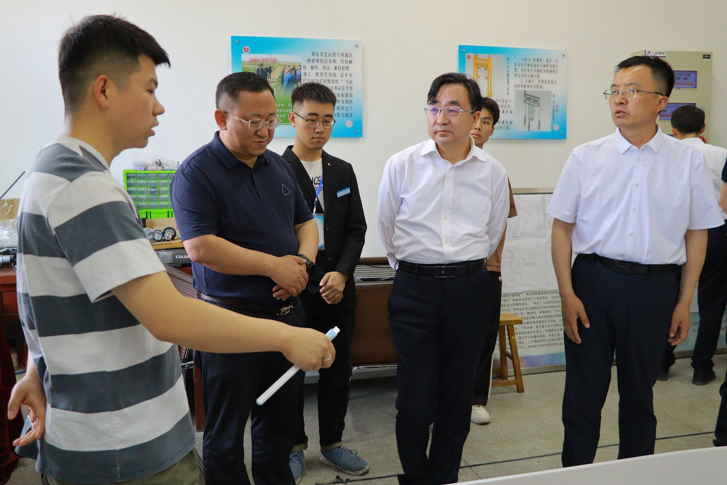 趙水民一行先后對創(chuàng)客中心的創(chuàng)意類機器人、黃花菜采摘機器人、光伏電池板清洗機器人、智能消殺機器人、智能礦山巡檢機器人、三維數(shù)字化技術(shù)創(chuàng)作、3D打印、多指協(xié)同機械手、自平衡小車等項目進行了詳細(xì)考察,對創(chuàng)客中心團隊取得的一系列成績予以高度肯定。