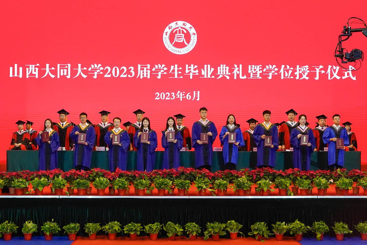 研究生畢業(yè)生代表、2020級化學專業(yè)馮海弟同學,本科畢業(yè)生代表、云岡學學院2019級文物保護技術專業(yè)高琳同學發(fā)言,代表全體畢業(yè)生向尊敬的師長、可愛的母校表達深厚感恩之情,寄語同學們找到自己的方向,成就最好的自我,綻放最美麗的人生;堅定理想、相信努力,心懷感恩、永念同大,牢記囑托、做新時代中國青年,在時代的坐標上不斷標記出璀璨奪目的出彩青春,讓青春韶華的光芒閃耀夢想星空。