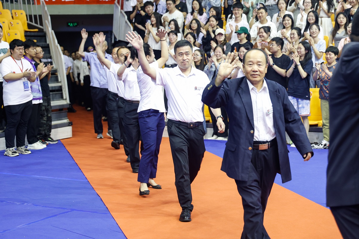 8時10分,在陣陣熱烈的歡呼聲與掌聲中,10位生活思政導師率先進入會場、踏上紅毯、健步而來。他們中,有宿管阿姨、食堂師傅、環(huán)衛(wèi)大爺、保安叔叔,這些特殊的老師們,起早貪黑精心烹制美味的一日三餐,風雨無阻扮靚四季有景的校園環(huán)境,晝夜不息時刻保衛(wèi)著校園安全,并且以他們質(zhì)樸的一言一行、一絲不茍的敬業(yè)精神,通過生活中的點點滴滴引領和感召著三萬多同大學子。緊隨其后的,是28位“最受學生歡迎教師”代表。他們中,有學識淵博、桃李天下的任課老師,有被同學們親切地稱呼為“哥”“姐”的輔導員老師。四年來,他們始終堅守教育初心,如春蠶,似蠟燭,指引同學們在浩瀚的知識海洋中奮楫揚帆、在廣闊的實踐天地里增長能力本領,讓“報效祖國、服務社會”在青春的心田上深深扎根。他們四年如一日的付出與堅守,給了學子們乘風破浪的勇氣銳氣,給了大家“到祖國最需要的地方去”的理想抱負。芬芳的鮮花、經(jīng)久不息的掌聲以及含淚的擁抱,是畢業(yè)生們對這些一路陪伴他們成長、給予他們遠走高飛的勇氣和本領的老師們的深深禮敬。