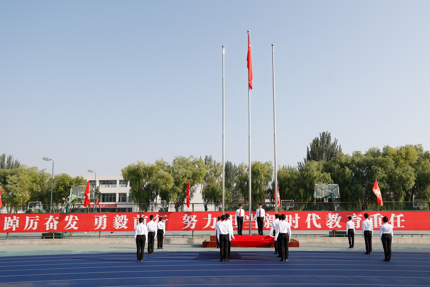 在雄壯的國(guó)歌聲中,全體師生面向冉冉升起的五星紅旗行注目禮、唱國(guó)歌。