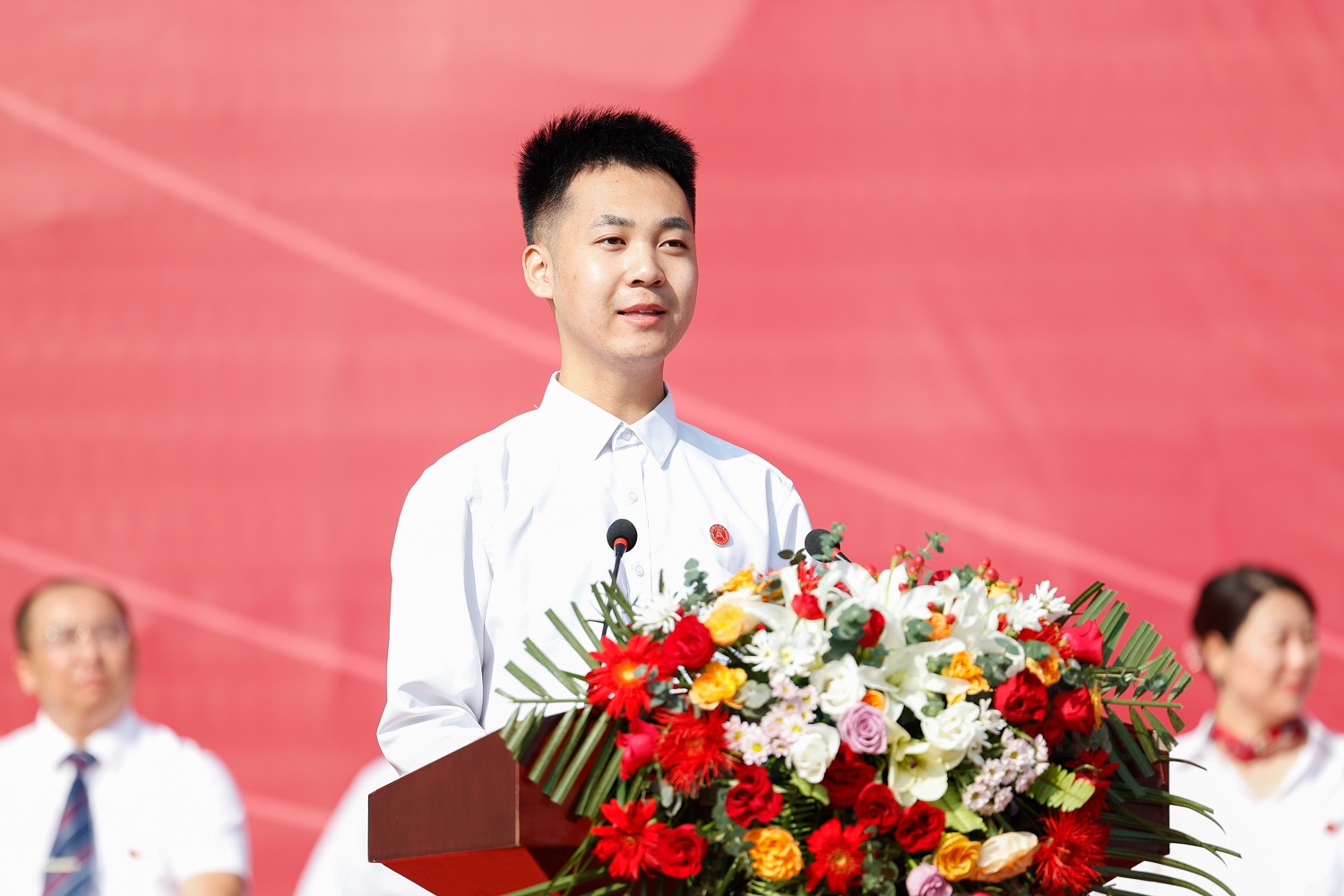 在校生代表、文學(xué)院李超偉同學(xué)鼓勵(lì)學(xué)弟學(xué)妹們要勇敢地跨過(guò)“學(xué)業(yè)理念轉(zhuǎn)變之門(mén)”“評(píng)價(jià)標(biāo)準(zhǔn)之門(mén)”“強(qiáng)基育人之門(mén)”,完成高中到大學(xué)的華麗轉(zhuǎn)身,書(shū)寫(xiě)屬于同大青年的奮斗篇章。