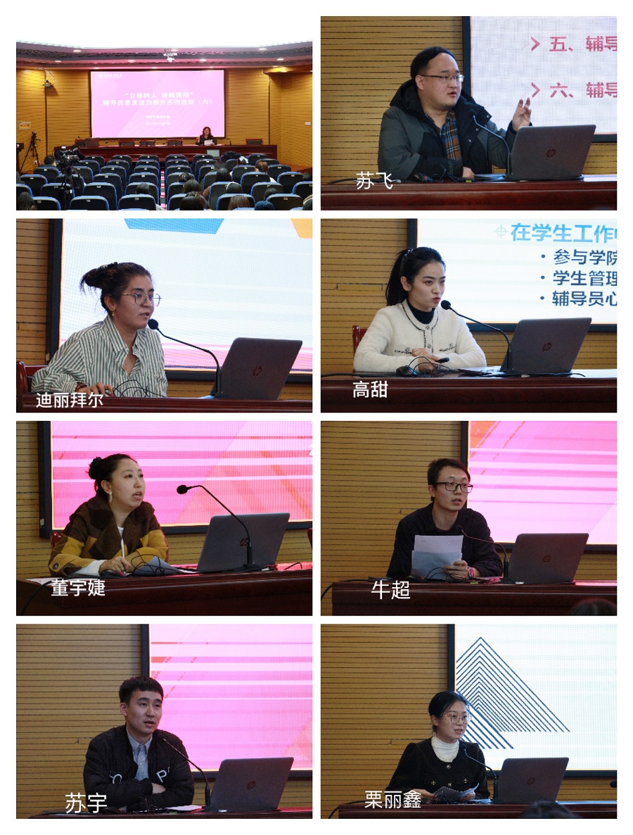 ?2023年學生工作部支持42位專職輔導員參加省教育廳舉辦的山西高校輔導員專題培訓研修班共7期。本次培訓由7位參訓代表對在外培訓的收獲進行分享交流,從不同角度切入對學生工作的看法和感悟。煤炭工程學院董宇婕老師闡述了輔導員作為指導者、管理者、教育者、傾聽者、愛人者對學生的重要作用;農學與生命科學學院高甜老師結合新生心理測評,分析了高危學生的心理特點,提出作為輔導員要對高危學生給予真誠的關注;建筑與測繪工程學院迪麗拜爾·阿力甫老師針對輔導員怎樣做好學生工作、如何走近學生提出了自己的建議;教育科學與技術學院蘇飛老師從輔導員制度、職業的產生、創新和發展談到輔導員要做到德才兼備;音樂學院栗麗鑫老師總結作為輔導員應當心中有愛,肩上有責,手上有招,腳下有路;計算機與網絡工程學院蘇宇老師對輔導員如何提升幸福感和獲得感進行分享;機電工程學院牛超老師針對學生班干部的選拔和培養分享了自己的經驗。