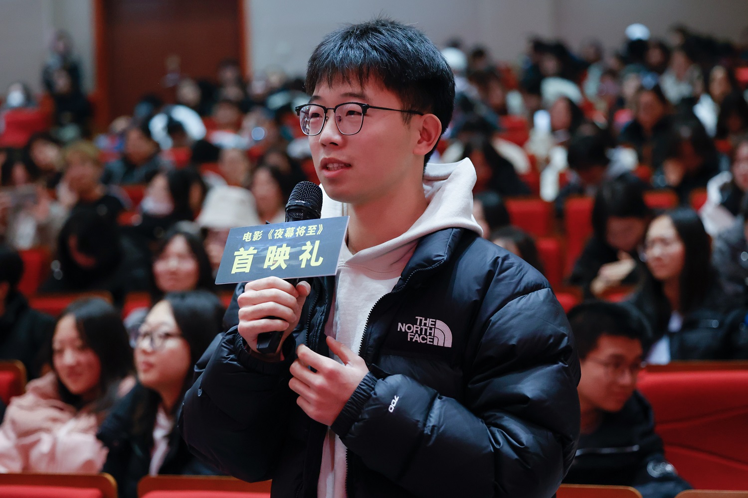 在映后交流環節,師生與影片主創團隊進行了熱烈的交流互動。“在拍攝遇到困難時,是什么樣的信念支撐您完成了創作?”“同大的求學經歷對您的成長有哪些幫助?”“您對懷揣電影夢想的青年有什么建議?”同學們踴躍發言提問,主創人員傾情互動,將現場氣氛推向高潮。師生們紛紛表示,這不僅是一次文化藝術交流,更是一次逐夢之旅,菅浩棟導演的逐夢歷程令人感動,催人奮進。菅浩棟表示,山西大同大學是自己夢想起航的地方,《夜幕將至》能夠在平遙國際電影展上大放異彩,離不開母校的培養和師長的教誨,希望學弟學妹們以“熱愛和堅持”為師,勇敢逐夢。建筑與測繪工程學院院長、時任煤炭工程學院團委書記喬元棟表示,十年一晃而過,菅浩棟在學校嘗試拍攝影片、創辦社團的奮斗歷程歷歷在目,看到他能心系母校、感恩母校,感到十分欣慰,希望他能始終秉持“厚德、博學、慎思、篤行”校訓精神,創作出更多優秀作品。