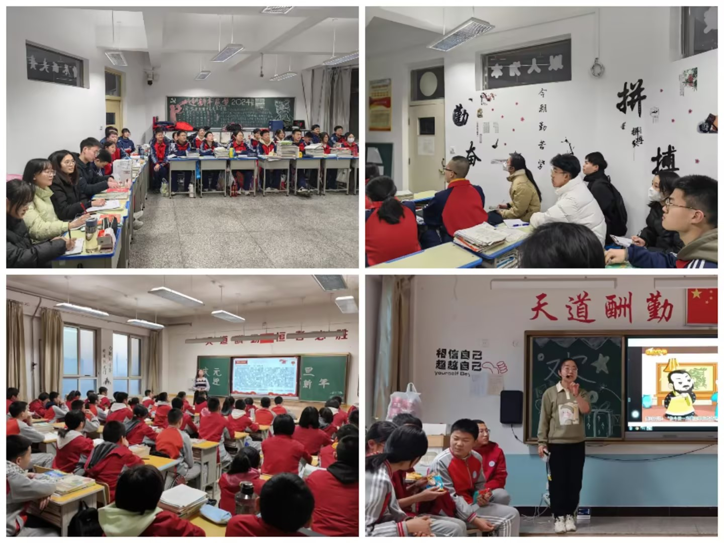 初高中班級的學生們一起觀看了習近平總書記2024年新年賀詞講話視頻,了解了新年、元旦的來歷及習俗。學生們回顧了2023年的成長與收獲,從刻苦訓練的軍訓到激情四射的秋季田徑運動會,從團結一心的跑操比賽到彰顯合力的合唱比賽。學生們回顧著過去一年的點點滴滴,分享著得失成敗,既有汗水也有歡欣。回顧了2023年的國家大事、家鄉的變化、家庭的親情故事。全體學生展望2024年,立下新的目標,播撒希望的種子,新征程的美好明天鼓舞砥礪奮進的信心。班會后,見習生同班主任和學生們進行了深度交流。