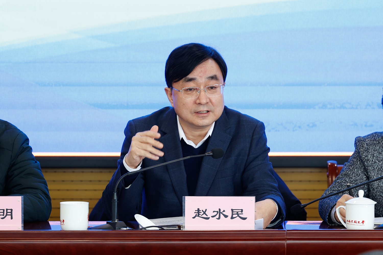 趙水民強調(diào),要把習(xí)近平總書記“不折不扣抓落實”“雷厲風(fēng)行抓落實”“求真務(wù)實抓落實”“敢作善為抓落實”的重大要求貫徹到學(xué)校實際工作中,堅持目標(biāo)導(dǎo)向和問題導(dǎo)向相結(jié)合,精準(zhǔn)謀劃、精準(zhǔn)施策、精準(zhǔn)發(fā)力。全校上下要站在新的起點,以責(zé)無旁貸的使命感、坐不下來的責(zé)任感、等不得的緊迫感,以更加飽滿的精神、更加扎實的工作、更加有力的措施,一手抓內(nèi)涵建設(shè),一手抓開放辦學(xué),解放思想,搶抓機遇,科學(xué)謀劃,銳意進取,奮力推動學(xué)校實現(xiàn)高質(zhì)量發(fā)展。