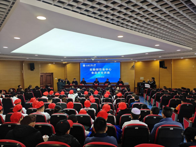 為深入貫徹習近平總書記關于食品安全“四個最嚴”重要指示精神,加強學校餐飲從業人員食品安全教育,降低食品安全隱患,強化食品安全主體責任,牢固樹立食品安全“第一責任人”意識,全面保障學校食品安全工作,守護廣大師生舌尖上的安全。3月6日,校后勤管理部邀請平城區市場監督管理局來我校聯合開展了食品安全進校園專項培訓活動暨后勤管理部食品安全講座。平城區市場監督管理局范宏宇副局長、盧濤副局長、崔彥明副局長及相關股室的主要負責人等9人,后勤管理部部長高鵬、副部長仝向東、飲食服務中心主任、各餐廳經理及校餐飲從業人員代表200余人參加。