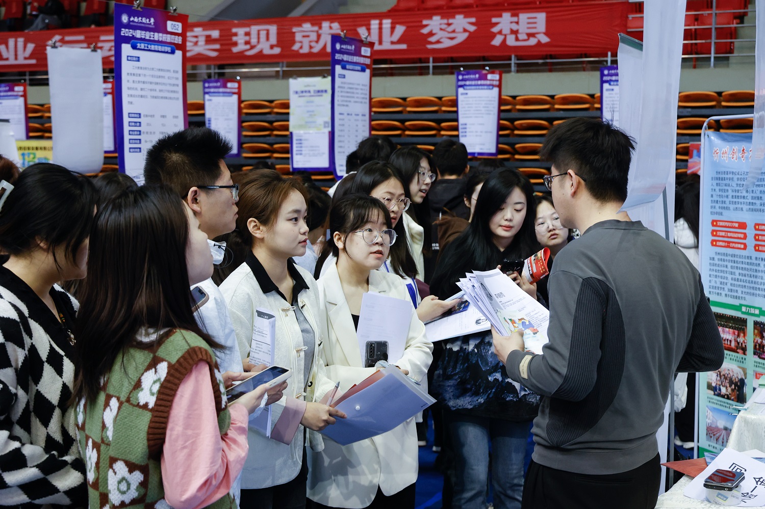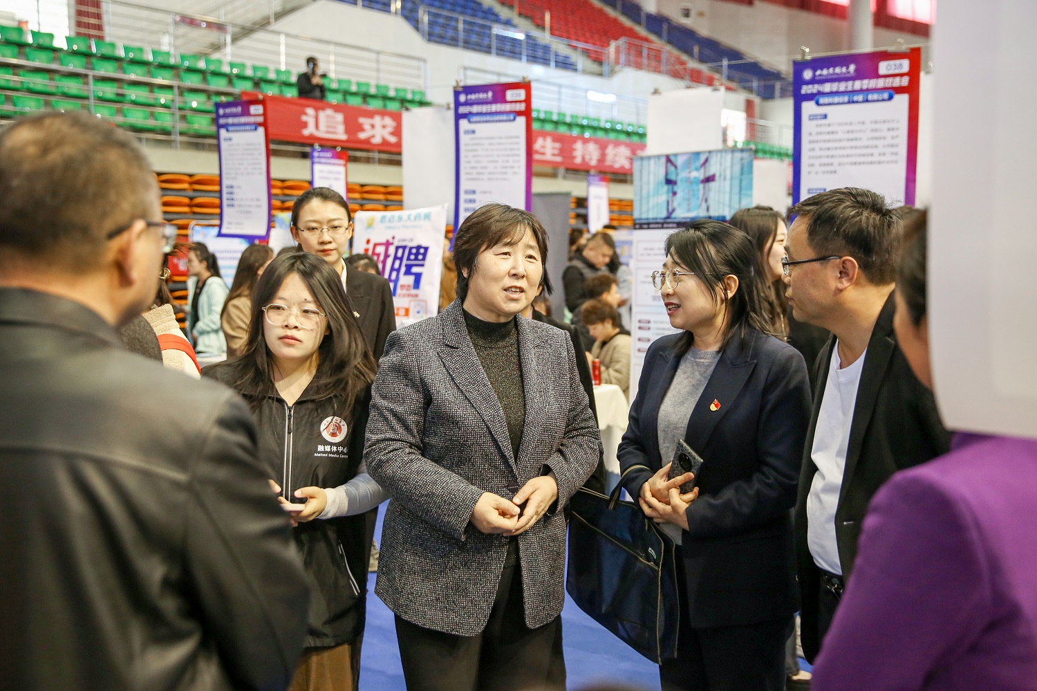為全面貫徹落實黨中央、國務院“穩(wěn)就業(yè)、保就業(yè)”決策部署,搶抓春季開學后促就業(yè)工作關鍵期,全力促進我校畢業(yè)生高質量充分就業(yè),3月31日上午,我校在御東校區(qū)天翔體育館舉辦山西大同大學2024屆畢業(yè)生春季校園雙選會。本次雙選會由學生工作部承辦,大同市委人才辦、大同市人力資源和社會保障局、大同市就業(yè)和人才服務中心協辦。本次雙選會共提供就業(yè)崗位798個,吸引7000余名學生參加,截至當日下午,1900余名畢業(yè)生初步達成就業(yè)意向。