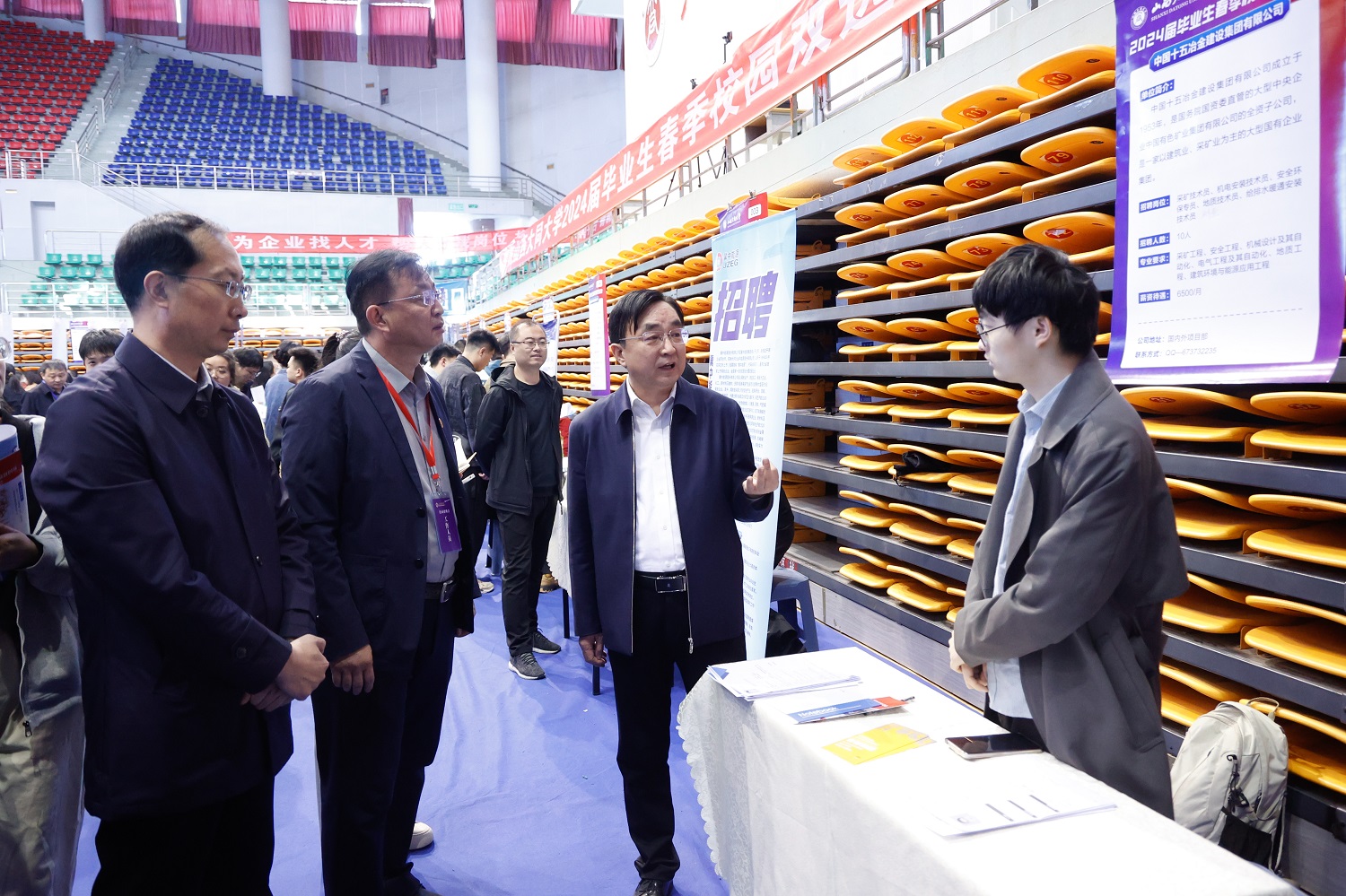 趙水民、姚麗英、寇福明、郭繼林、張旻、石鳳珍等校領導深入招聘會現場指導調研,與用人單位和畢業(yè)生交流互動,傾聽用人單位對學校人才培養(yǎng)工作的意見建議、了解招聘進展情況,向用人單位推薦介紹相關專業(yè)和第二學士學位畢業(yè)生培養(yǎng)情況,向學院班子詢問2024屆畢業(yè)生就業(yè)工作開展情況,要求壓緊壓實責任,多措并舉,將“穩(wěn)就業(yè)、保就業(yè)”任務落實落細。