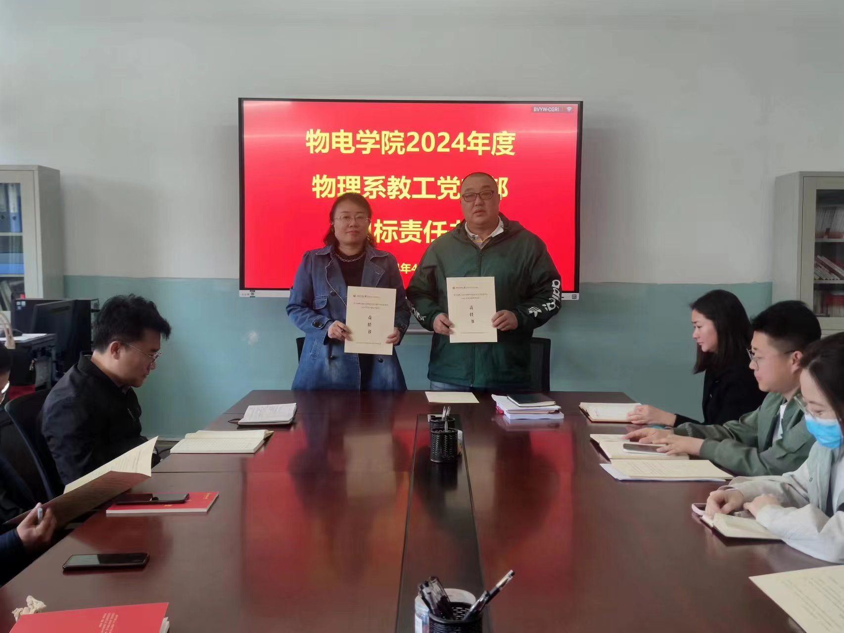當(dāng)前位置:為進(jìn)一步加強(qiáng)學(xué)院黨支部建設(shè),充分發(fā)揮黨支部的戰(zhàn)斗堡壘作用和黨員的先鋒模范作用,進(jìn)一步壓實(shí)黨建工作責(zé)任,切實(shí)提升黨建工作水平,推動(dòng)我院教育教學(xué)工作高質(zhì)量發(fā)展,近日,物理與電子科學(xué)學(xué)院黨委舉行2024年度黨支部黨建工作目標(biāo)責(zé)任書(shū)簽訂儀式。學(xué)院黨委書(shū)記張曉云與下設(shè)的7個(gè)黨支部分別簽訂《2024年度基層黨組織建設(shè)工作目標(biāo)責(zé)任書(shū)》。學(xué)院黨委副書(shū)記吉秦雁主持儀式。