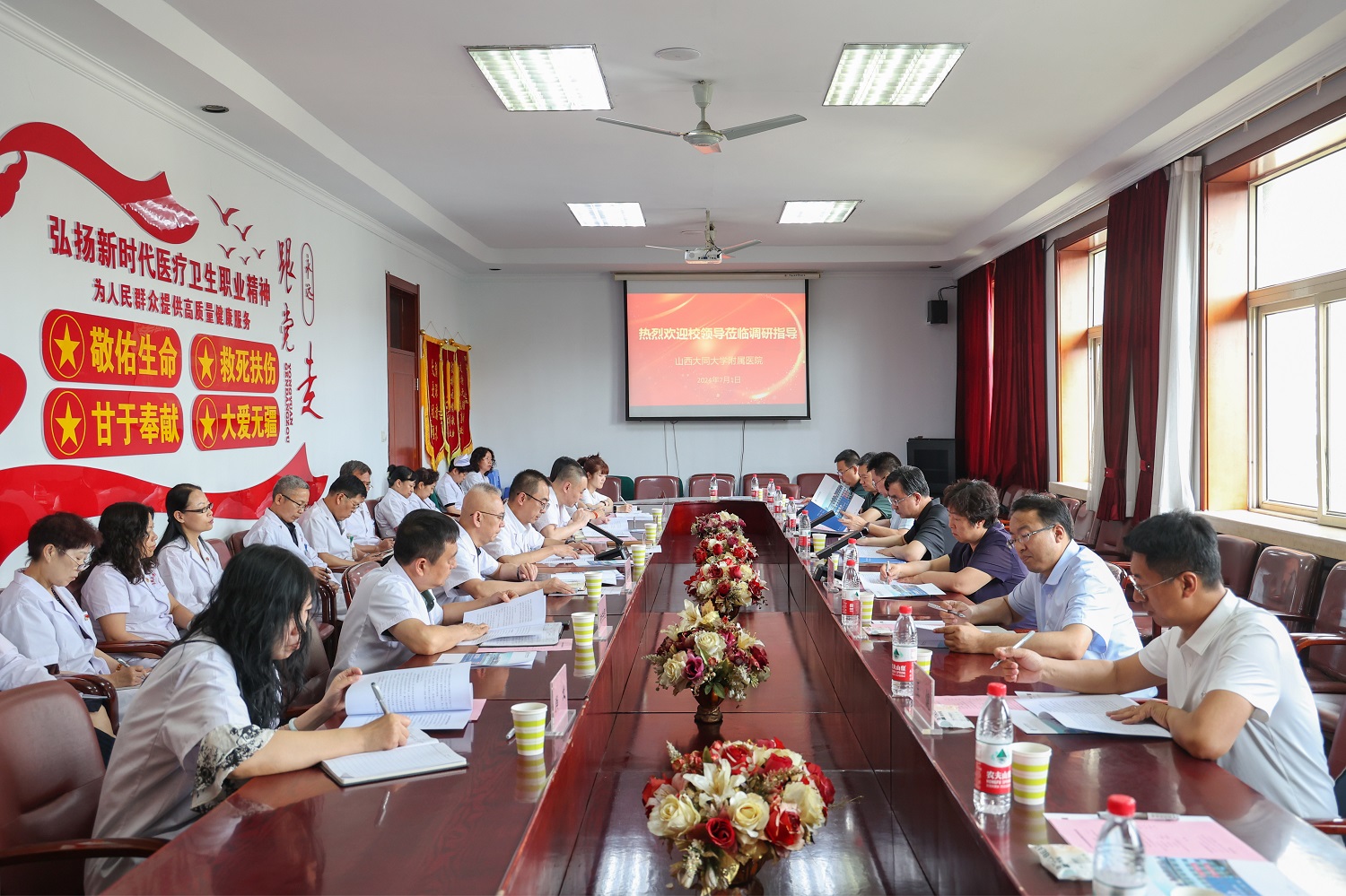 調(diào)研座談會上,附屬醫(yī)院黨委書記張月東、院長陳勇作黨政工作匯報,副院長尉洪昌、李鵬分別圍繞分管工作進行匯報。與會人員圍繞醫(yī)院各項具體工作進行研討。