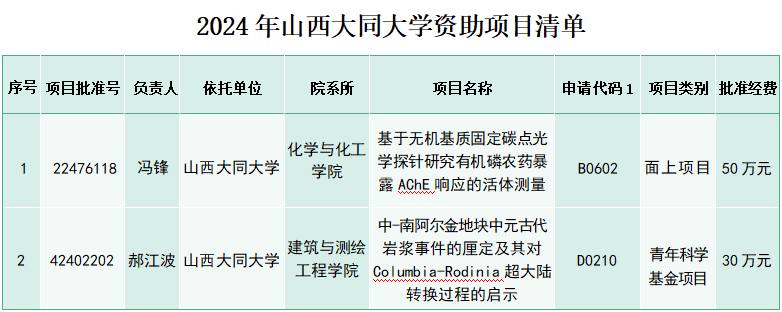 8月23日,國自然基金委正式發布《關于2024年國家自然科學基金集中接收申請項目評審結果的通告》。我校2項獲批資助,化學與化工學院馮鋒教授獲批面上基金1項,建筑與測繪工程學院郝江波博士獲批青年基金1項,資助總經費80萬元。