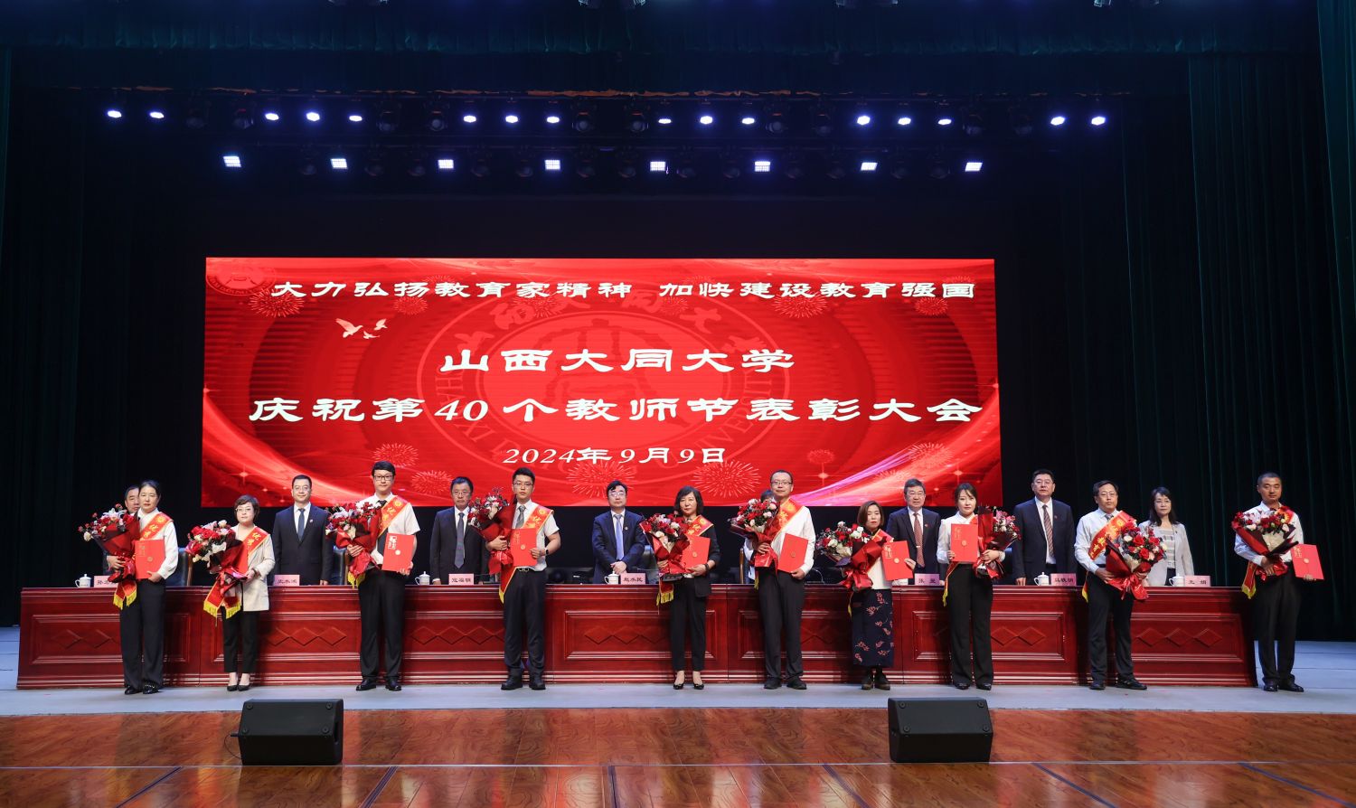 ?? 弘揚教育家精神,共筑教育強國夢。9月9日,山西大同大學2024年教師節(jié)慶祝表彰大會在本真樓演播廳隆重召開,共同慶祝第40個教師節(jié)。校黨委書記趙水民出席大會并講話。校黨委副書記、校長姚麗英主持大會。