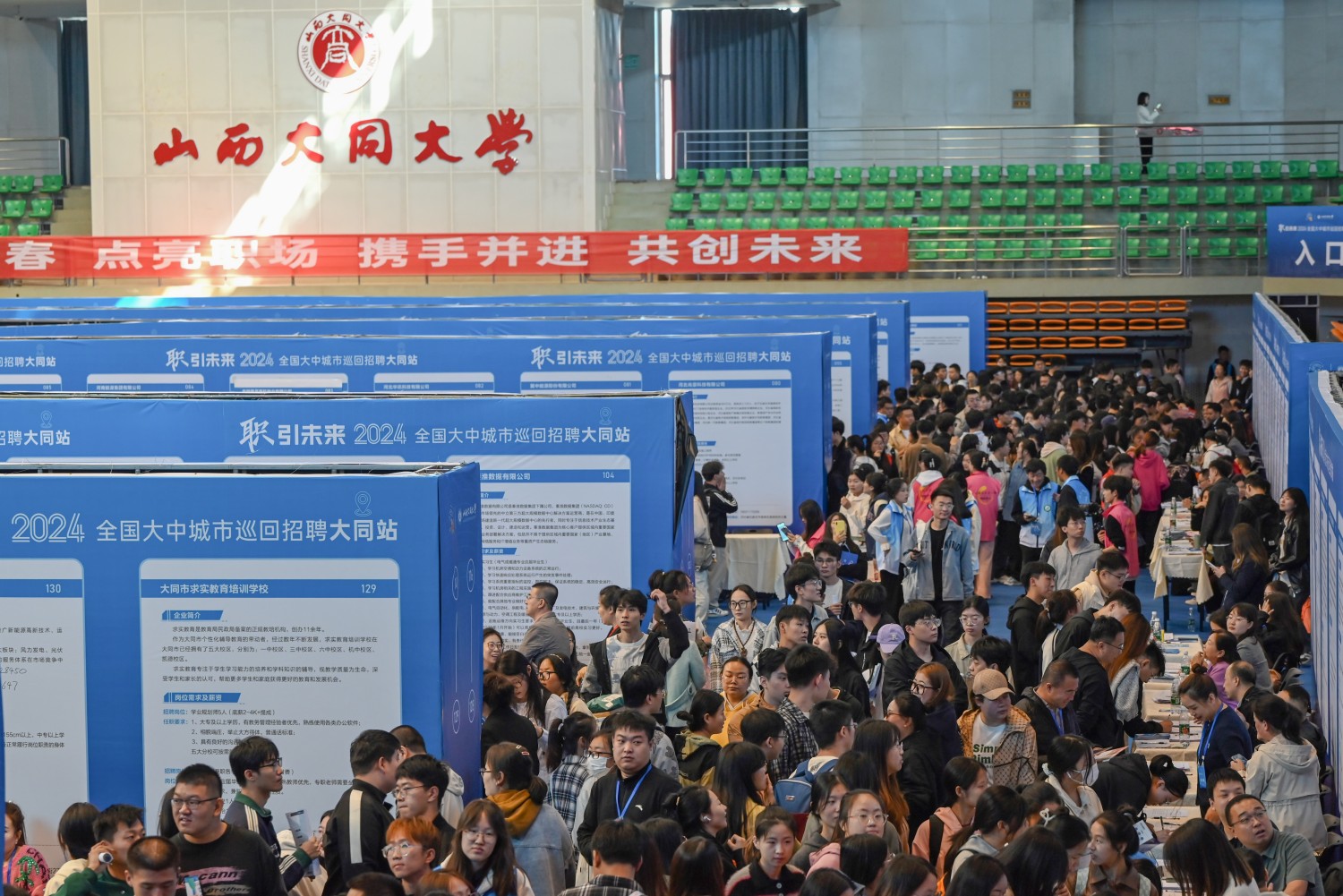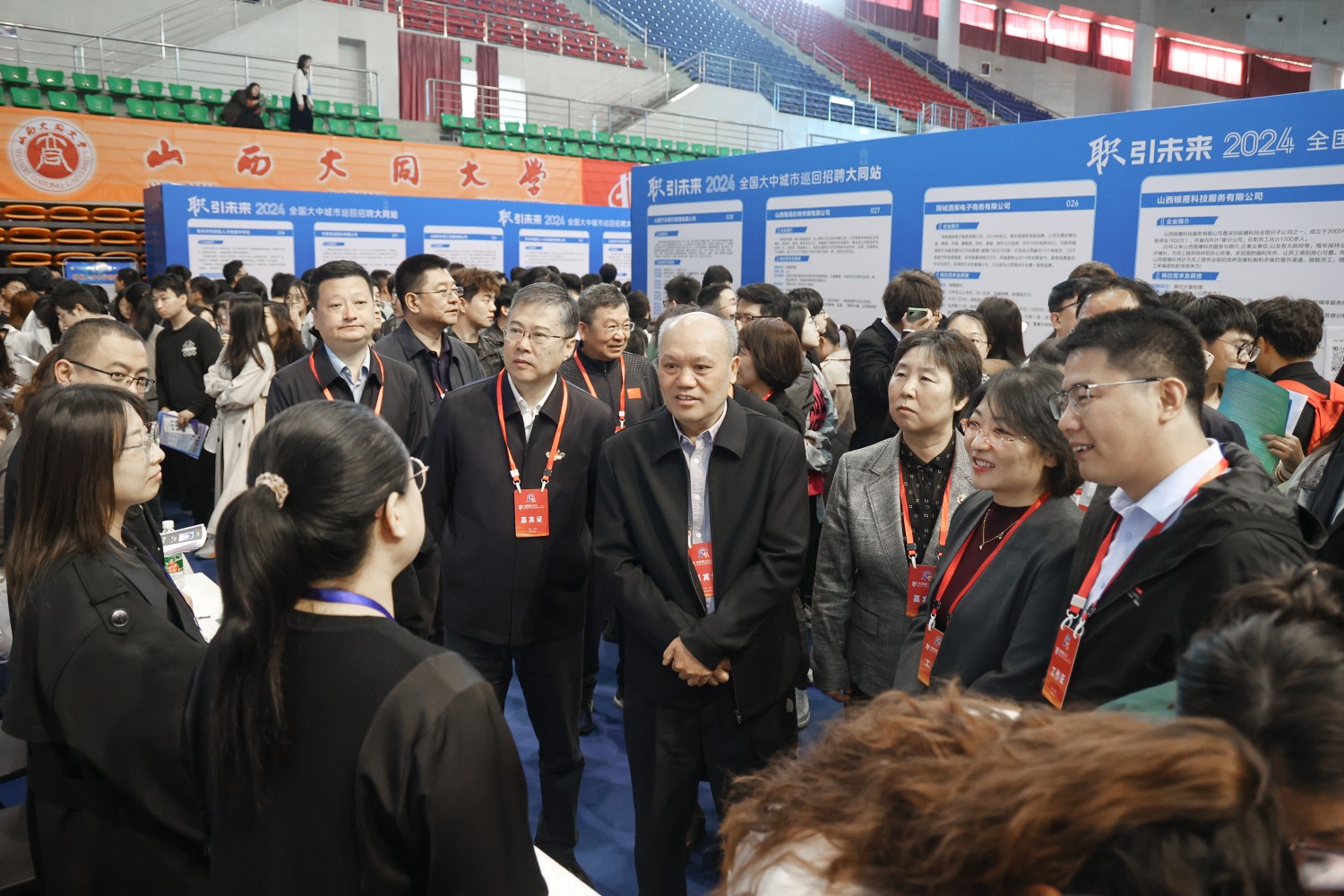 9月25日,“職引未來——2024年全國大中城市巡回招聘大同站活動”在我校天翔體育館舉行。人力資源和社會保障部全國人才流動中心主任楊剛基,校黨委副書記、校長姚麗英,校黨委常委、副校長張旻,校黨委常委、副校長馬軼明,山西省就業服務局黨委書記、局長薛春生,山西省人力資源市場黨委書記、主任徐萍,大同市人力資源和社會保障局局長楊建中以及山西省人力資源市場、學校相關部門負責人到會巡場。