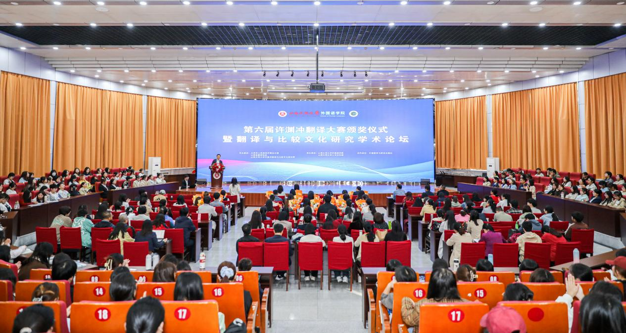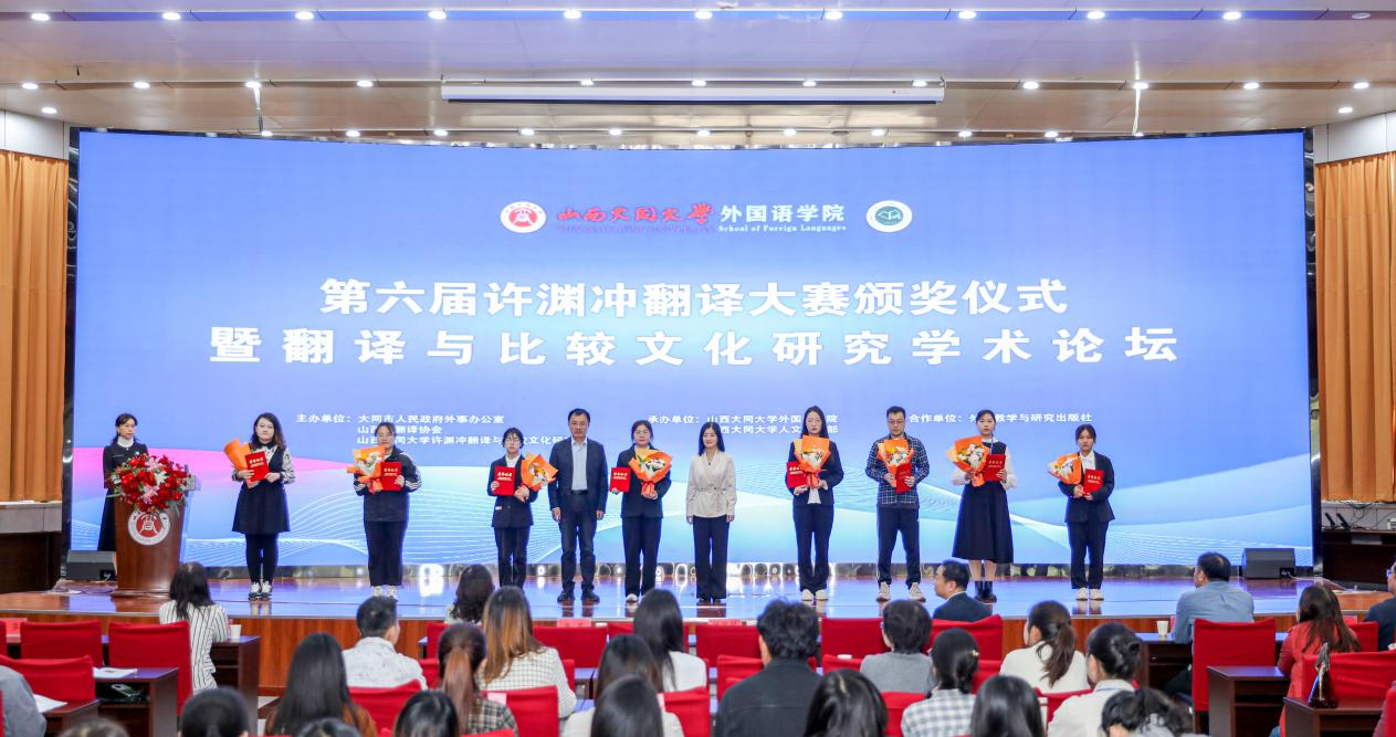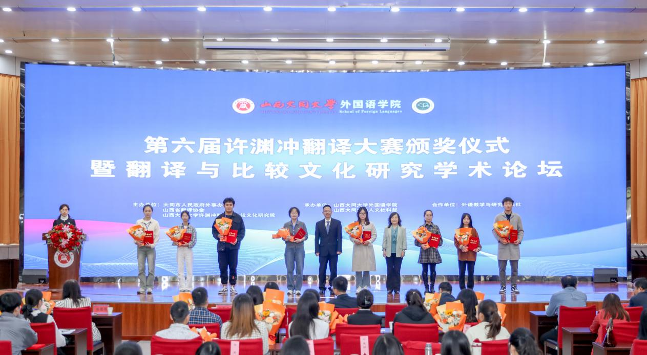 9月28日,第六屆許淵沖翻譯大賽頒獎儀式暨翻譯與比較文化研究學術論壇在我校舉行。此次活動由山西大同大學許淵沖翻譯與比較文化研究院、大同市人民政府外事辦公室及山西省翻譯協會聯合主辦,山西大同大學外國語學院、人文社科部共同承辦。活動旨在深入傳承和發揚許淵沖先生的翻譯思想,在全球化背景下加深文化理解與尊重,培養優秀跨文化傳播人才。校黨委副書記、許淵沖翻譯與比較文化研究院院長寇福明教授,大同市人民政府外事辦公室主任李霞出席活動并致辭。山西省翻譯協會、外語教學與研究出版社、人文社科部和外國語學院相關負責人參加活動。