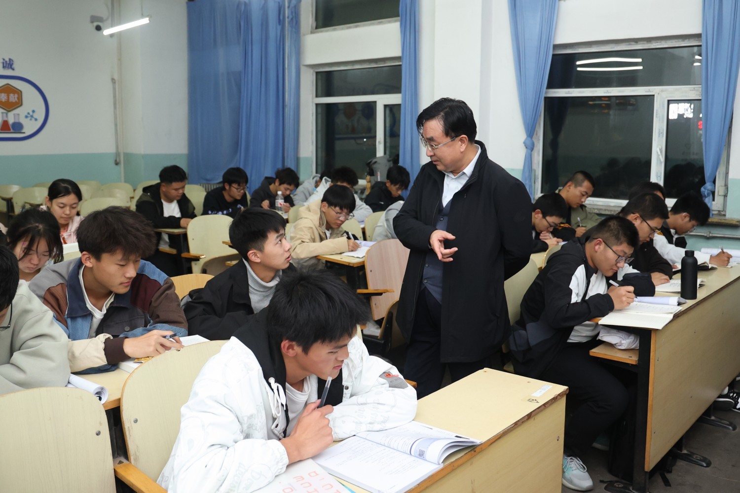 晚自習現場,同學們或開展學習分享活動,或放聲誦讀,或自覺將手機統一放置到收納袋中,靜心溫習功課……趙水民走進教室,與同學們輕聲交談,詢問他們的學習進度和讀書情況,鼓勵同學們要自覺端正學習態度,充分利用好晚自習,學習專業知識,廣泛閱讀,不斷增強個人素養。