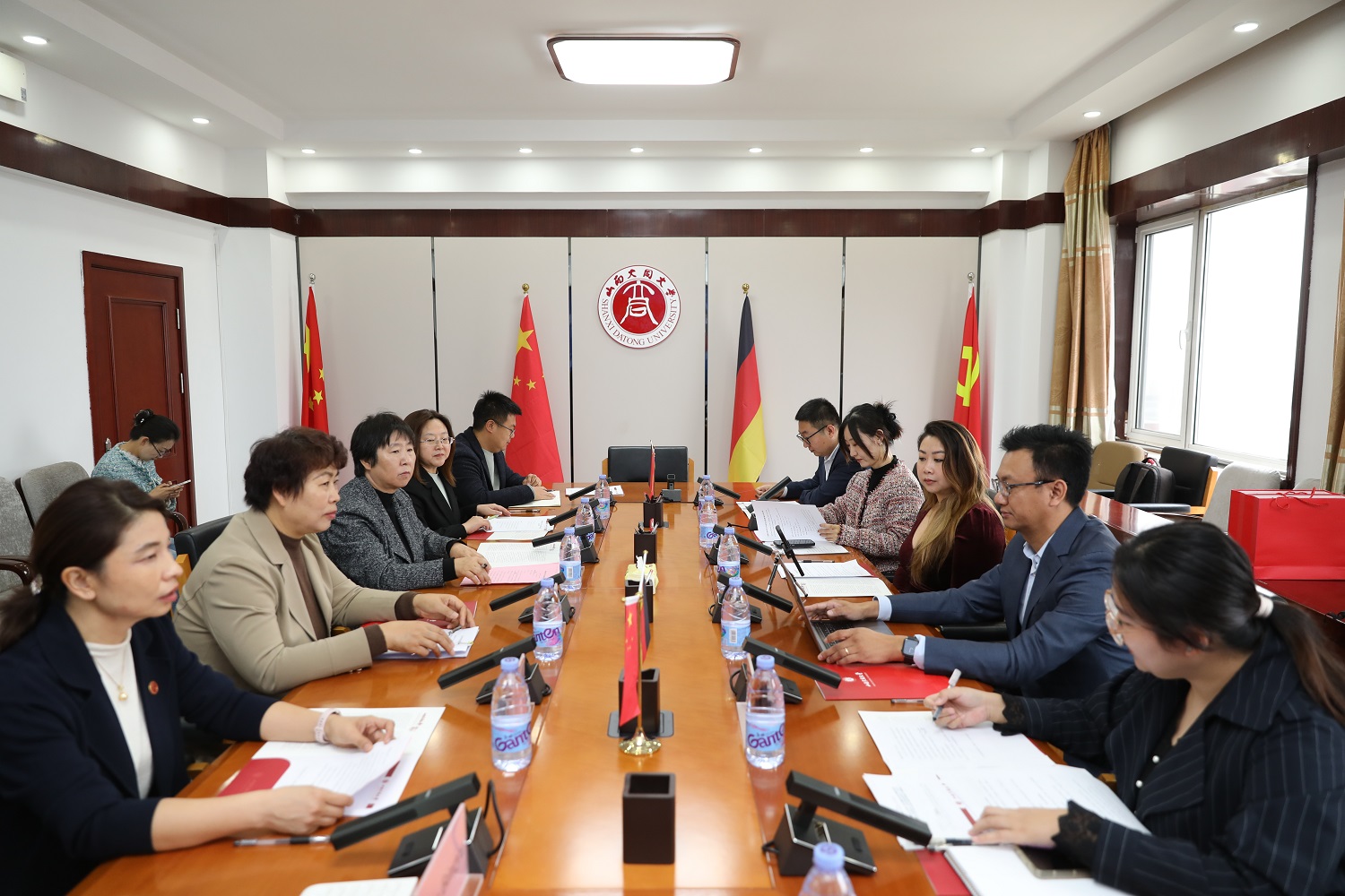 姚麗英代表學(xué)校對維拉瓦特女士一行的到來表示熱烈歡迎,她簡要介紹了大同市及山西大同大學(xué)的基本情況,以及近年來我校在開放辦學(xué)、合作交流方面取得的成果。她希望,此次交流能夠進(jìn)一步加深兩校之間的了解,共同推動兩校的人才聯(lián)合培養(yǎng)項(xiàng)目,在中德兩國友好的大背景下,為推進(jìn)中德教育文化交流作出有益貢獻(xiàn)。