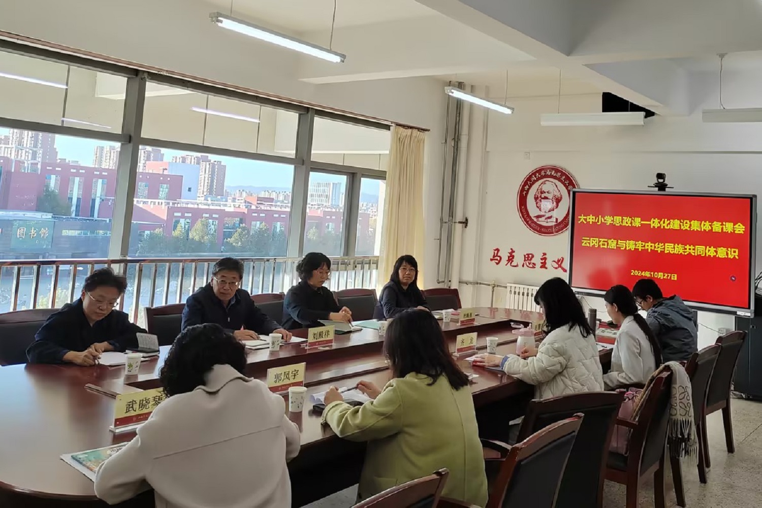 為進一步推動習近平總書記關于加強和改進民族工作的重要思想進教材進課堂進頭腦,切實推進大同片區大中小學思政課一體化建設,不斷提高思政課的針對性和吸引力,10月27日,由我校馬克思主義學院牽頭,大同片區大中小學聯合舉辦“云岡石窟與鑄牢中華民族共同體意識”集體備課會。山西大同大學馬克思主義學院、大同高等師范專科學校思政部、大同市第一中學校、大同市實驗小學等相關負責同志及師生代表參加。