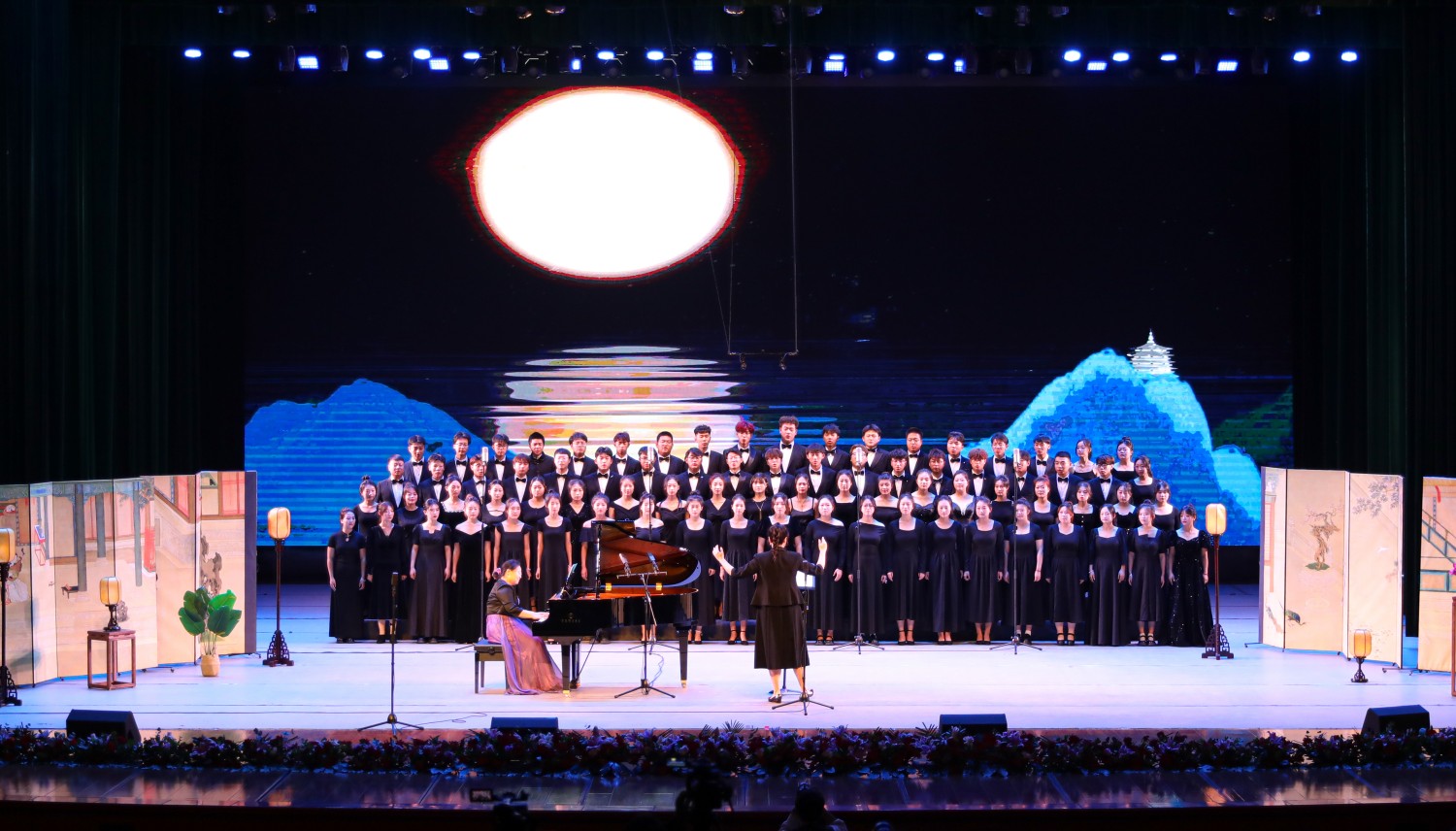 演出在我校音樂學院合唱團演繹的《次北固山下》中拉開帷幕。余惠承教授師生團隊為觀眾們帶來了《白頭吟》《畫》《聲聲慢》《蝶戀花·檻菊愁煙蘭泣露》《錦瑟》《決別書》等經典古詩詞藝術歌曲。其中,余惠承教授的兩首獨唱《白頭吟》《畫》技驚四座:《白頭吟》通過聲音的抑揚頓挫,傳達了歌詞中的情感波動,使聽眾能夠深刻感受到歌曲中的悲憤與渴望;《畫》又使現場觀眾仿佛置身于一幅寧靜而美好的山水畫卷。