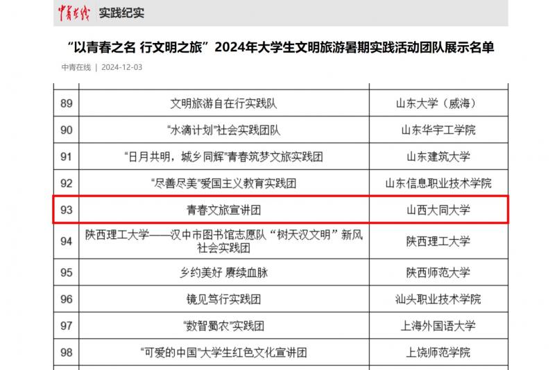 “以青春之名行文明之旅”——2024年大學生文明旅游暑期實踐活動由文化和旅游部市場管理司、教育部思想政治工作司、共青團中央青年發展部共同開展。該活動自2024年6月21日啟動以來,吸引了來自全國的1750支大學生實踐團隊踴躍報名參與,足跡遍布大江南北,其影響力輻射全國。組織方經過多輪審議,最終推薦170支大學生實踐團隊進入2024年全國大學生文明旅游暑期實踐活動團隊展示。