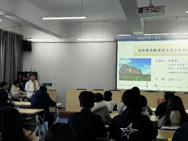 ? 11月21日下午,化學與化工學院王俊麗博士在明達樓201會議室作題為“低階煤熱解建模及其分級利用”的學術講座。本次講座由科學技術部和化學與化工學院共同舉辦,是我校2024年下半年博士論壇系列講座之一。本次講座由化學與化工學院副院長王科偉主持,來自學院的50余名師生參與了此次學術交流。
