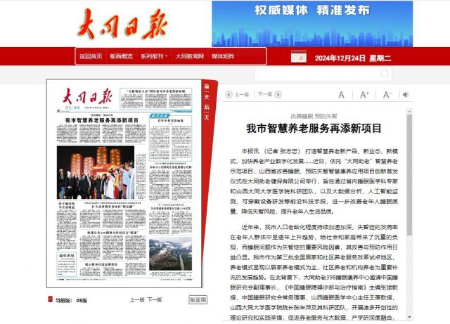 近年來,我市人口老齡化程度持續加速加深,失智癥的發病率在老年人群體中呈逐年上升趨勢,給社會和家庭帶來了沉重的負擔,而睡眠問題作為失智癥的重要風險因素,其改善與預防作用日益凸顯。我市作為第三批全國居家和社區養老服務改革試點地區,養老模式呈現以居家養老模式為主,社區養老和機構養老為重要補充的發展趨勢。在此背景下,大同助老398睡眠康養中心邀請中國睡眠研究會副理事長、《中國睡眠障礙診斷與治療指南》主編張斌教授,中國睡眠研究會常務理事、山西睡眠醫學中心主任王蓓教授,山西大同大學醫學院院長張年萍及其科研團隊,開展諸多開創性的理論研究和實踐舉措,促進養老服務與大數據、產學研深度融合,打造一個精準、高效、個性化的睡眠與失智預防管理系統。