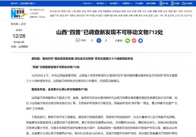 12月25日上午,中共山西省委宣傳部、山西省人民政府新聞辦公室組織召開“推動高質量發展深化全方位轉型”系列主題第三十八場新聞發布會,山西省文物局有關負責同志介紹情況,并回答記者提問。