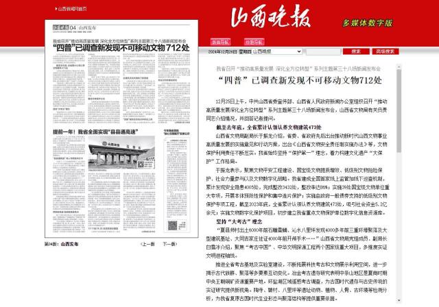 王振華表示,在第三次全國文物普查中,我省共調查登記不可移動文物53875處,截至12月23日,我省已復查“三普”登記不可移動文物31544處,復查率58.5%;“四普”已調查新發現不可移動文物712處。