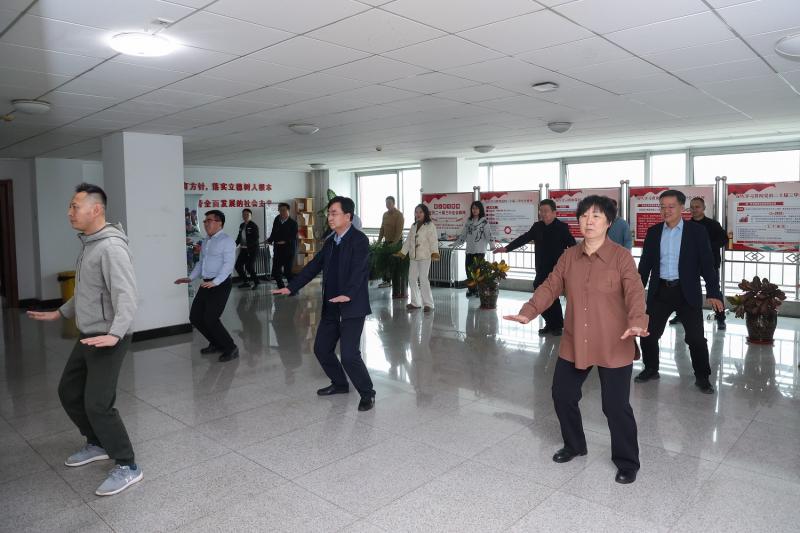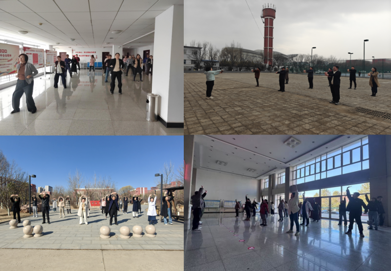校領導深知教職工身心健康對學校發展的重要性,多次過問活動籌備情況,協調各方資源,為活動順利開展提供堅實保障。每日上午大課間,陽光灑滿校園,行知樓樓道、各學院教學樓前,教職工們身著整齊服裝,精神飽滿列隊。伴隨著悠揚古典音樂,在教練帶領下,大家緩緩起勢,開啟“八段錦”練習。