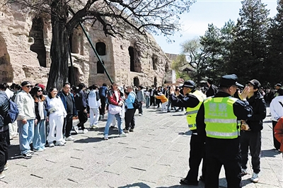 筑牢安全防線,細節決勝關鍵。云岡研究院成立安全巡查專項工作組,對洞窟安全、基礎設施、用水用電、消防等開展隱患大排查,構筑立體化安全防護體系。通過增加重點洞窟、場館的安防力量,進行分流疏導和安全預警,全面保障游客游覽安全。同時,協調大同市和云岡區相關部門,協助景區開展安全保衛、交通、市場、衛生、消防、醫療等服務,全方位織密旅游安全防護網。