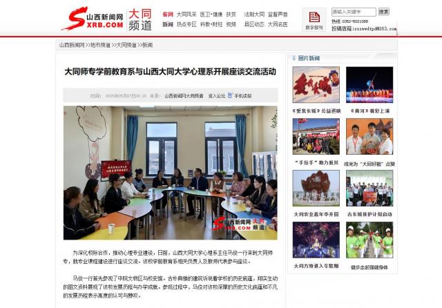 為深化校際合作,推動心理專業建設,日前,山西大同大學心理系主任馬俊一行來到大同師專,就專業課程建設進行座談交流。該校學前教育系相關負責人及教師代表參與座談。