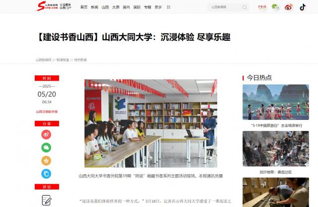“閱讀是我們體驗世界的一種方式?!?月16日,記者在山西大同大學感受了一番閱讀之樂。
