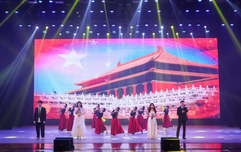 尾聲“時代新聲”篇章,朗誦《月光下的中國》以詩一般的語言勾勒出祖國山川湖海的壯麗畫卷,歌曲《美麗中國走起來》激昂澎湃,藝術(shù)作品展示《美美與共》將時尚舞臺幻化為藝術(shù)交融的秀場,歌伴舞《我愛你中國》唱響對祖國母親的深深眷戀,民族舞《有那么一個地方》舞出民族團(tuán)結(jié)的和諧之美,歌曲《百年》謳歌黨的百年奮斗歷程與輝煌成就。